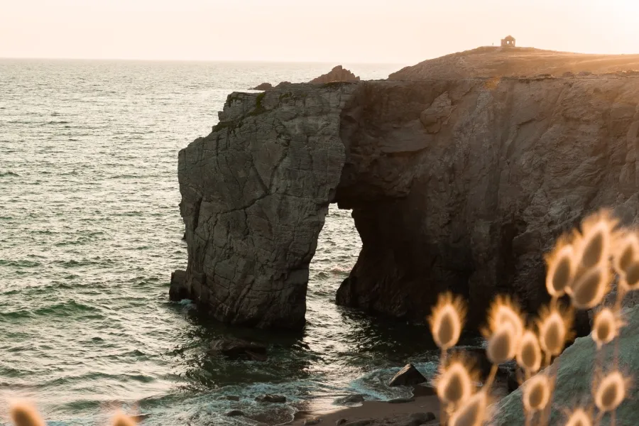 L’Arche de Port Blanc à Quiberon, c’est l’un de ces endroits qui vous font dire « waouh » à chaque coup d’œil. Située sur la côte sauvage, cette formation rocheuse impressionnante est un véritable chef-d'œuvre de la nature, sculptée par des siècles d’érosion. Avec sa forme unique, l’arche semble presque irréelle, comme un pont géant reliant la mer et les falaises.