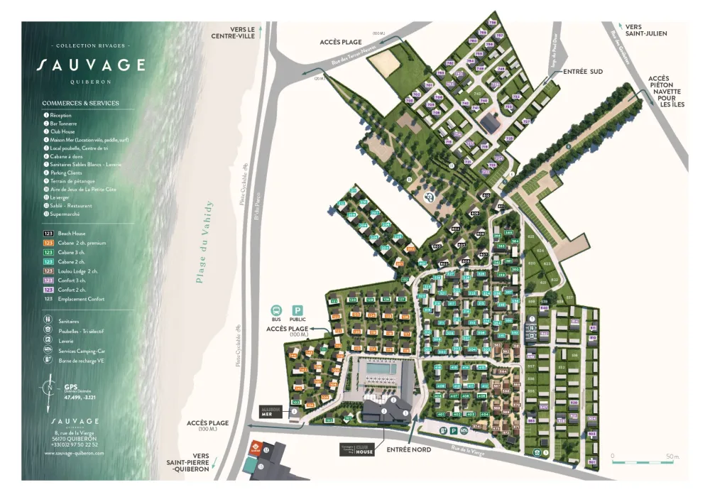 À Sauvage, on trouve des Cabanes de Quiberon et des Beach Houses, posées au cœur d’un environnement préservé. Grâce à la numérotation indiquée sur le plan, vous visualisez facilement leur emplacement : plus proches de la plage, à deux pas du Club House ou non loin des piscines. Avec l’option Mon Hébergement, vous pouvez même choisir le numéro précis qui correspond à vos envies.